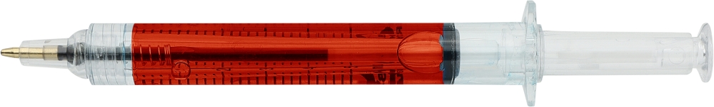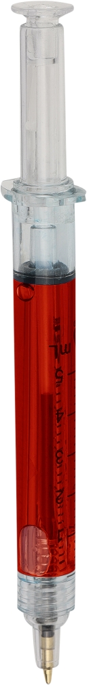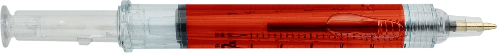 Propiska ve tvaru injekční stříkačky, červená