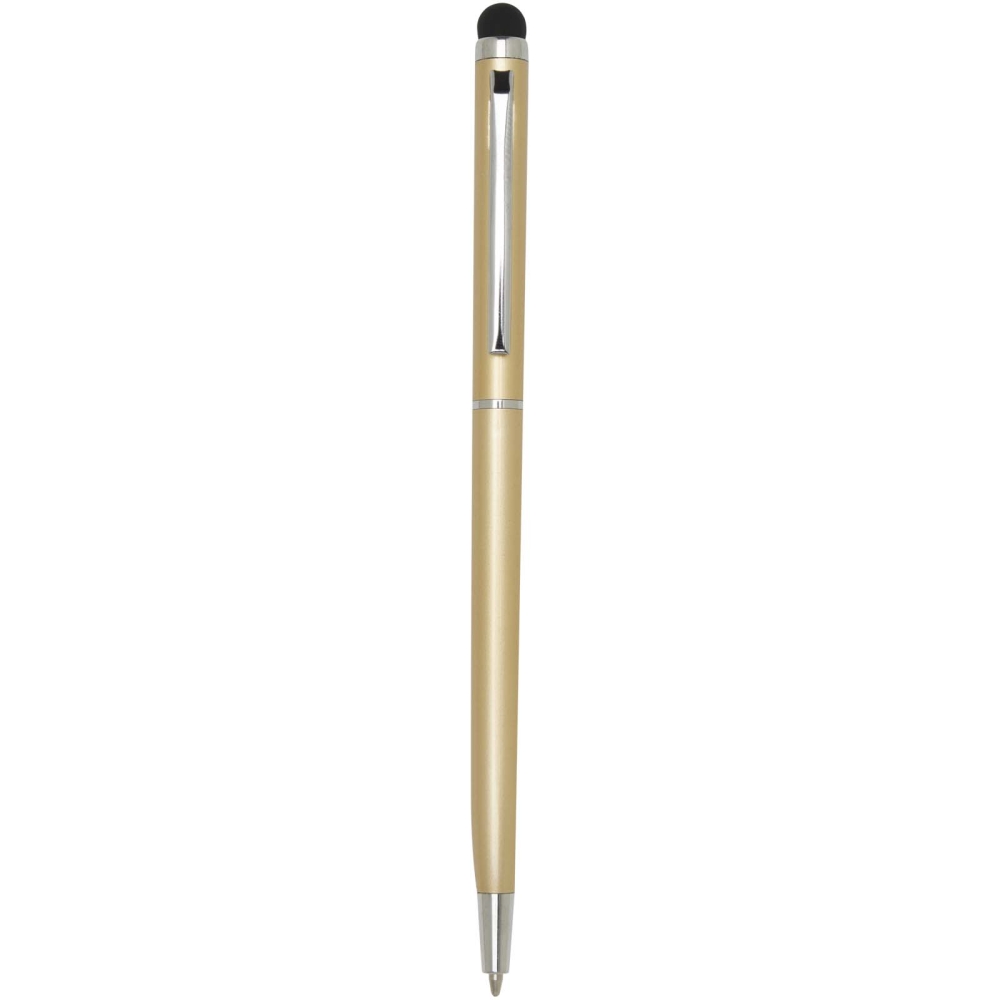 Tato univerzální kombinace propisky a stylusu je vyrobena z odolného hliníku. Propiska umožňuje hladké psaní, zabudovaný stylus je pak ideální pro přesné ovládání dotykových obrazovek. Barva inkoustu: Modrá. Délka psaní: 1000 metrů. Rozměr hrotu: 1,0 mm. Rozměry: 13,8 x O 0,8 cm
