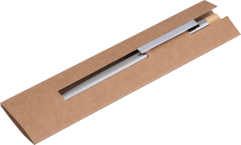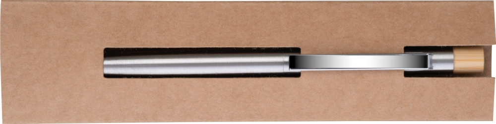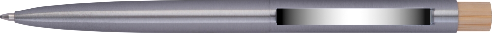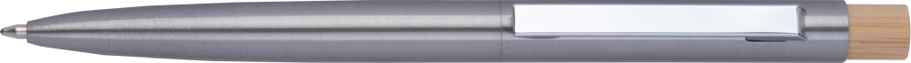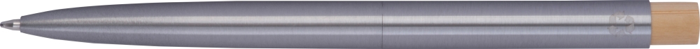 Propiska z nerezové oceli s bambusovým tlačítkem a velkokapacitní modrou náplní. Rozměry: o 0,9 x 13,9 cm