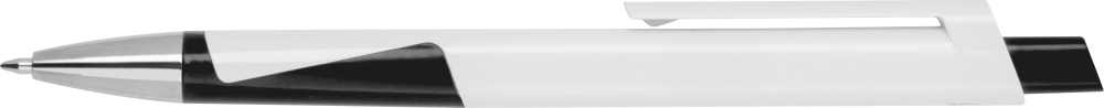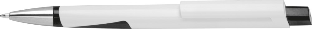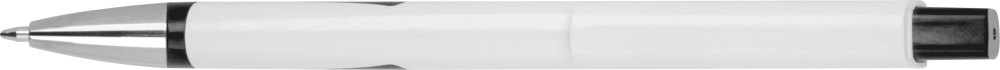 Bílá propiska z recyklovaného plastu s modrou náplní. Rozměry: 14,5 x 1,1 x 1 cm