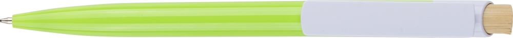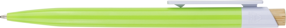 Propiska z recyklovaného ABS plastu s bambusovým tlačítkem a bílým klipem, vhodné pro digitální tisk. Přibližná délka psaní 600 metrů. Modrý inkoust. Rozměry: 1 cm x 1,4 cm x 14,4 cm.