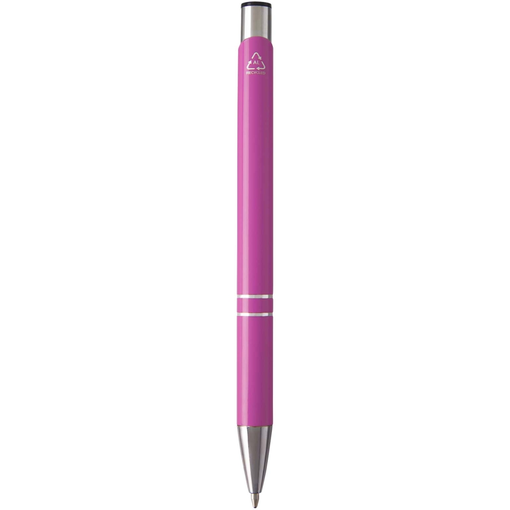 Propiska vyrobená z recyklovaného hliníku, s lakovanou a leštěnou povrchovou úpravou a nápadnými detaily z chromu. Snižuje také množství odpadu na skládkách a pomáhá šetřit přírodní zdroje s cílem snížit emise skleníkových plynů. Barva inkoustu: Modrá. Délka psaní: 1000 metrů. Rozměr hrotu: 1,00 mm. Rozměry: 13,6 x O 1 cm
