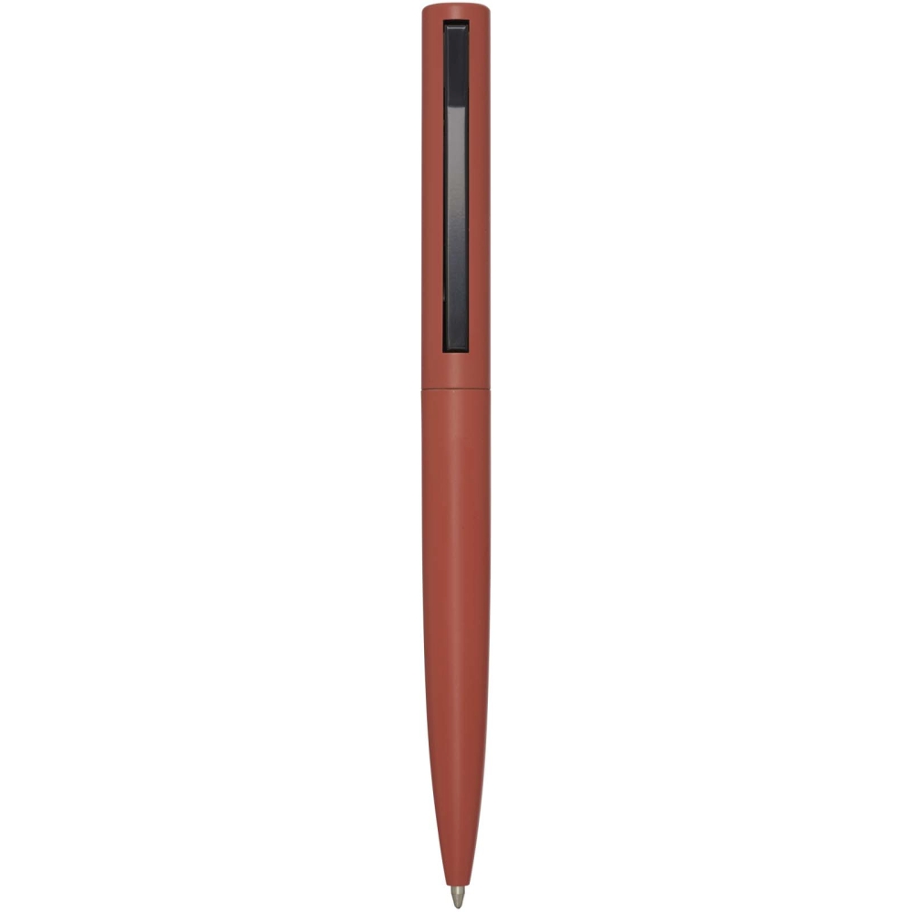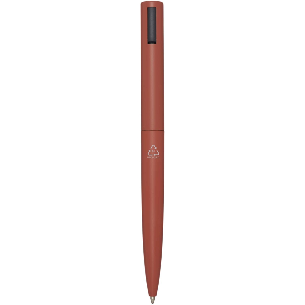 Propiska s horní částí těla vyrobenou z recyklovaného plastu a spodní částí z recyklovaného hliníku. Spona je vyrobena ze železa. Barva inkoustu: Modrá. Délka psaní: 1000 metrů. Rozměr hrotu: 1,0 mm. Rozměry: 14,5 x O 1,5 cm