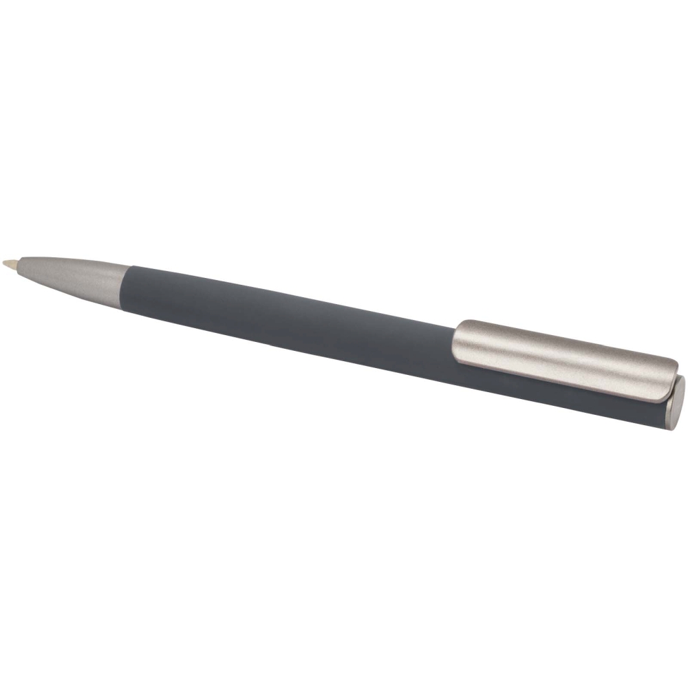 Propiska s tělem z recyklovaného hliníku a stříbrným klipem z ABS plastu. Snižuje také množství odpadu na skládkách a pomáhá šetřit přírodní zdroje s cílem snížit emise skleníkových plynů. Barva inkoustu: Černá. Délka psaní: 800 metrů. Rozměr hrotu: 1,0 mm. Rozměry: 14 x O 1,1 cm