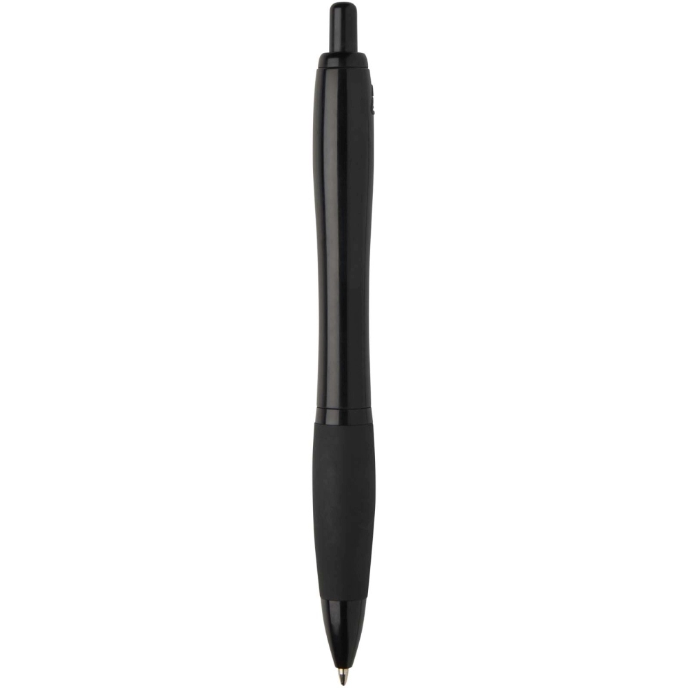 Propiska v černém provedení má stylový zaoblený design s černými lemováními a je vyrobeno z recyklovaného plastu, což snižuje potřebu původních materiálů. Díky rychlému stiskacímu mechanismu se propiska rychle používá a má měkký úchop, který snižuje napětí na psací ploše. Barva inkoustu: černá. Délka psaní: 1000 metrů. Rozměr hrotu: 1,0 mm. Rozměry: 13,9 x O 1,3 cm
