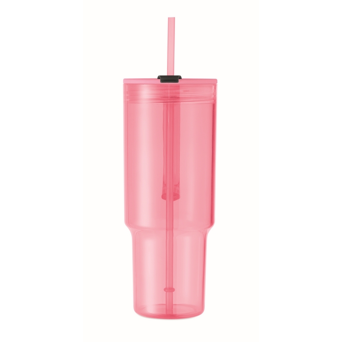 Průhledný hrnek z RPET s víčkem a PP brčkem. Objem: 1200 ml. Rozměry: 14,2 x 25,5 cm