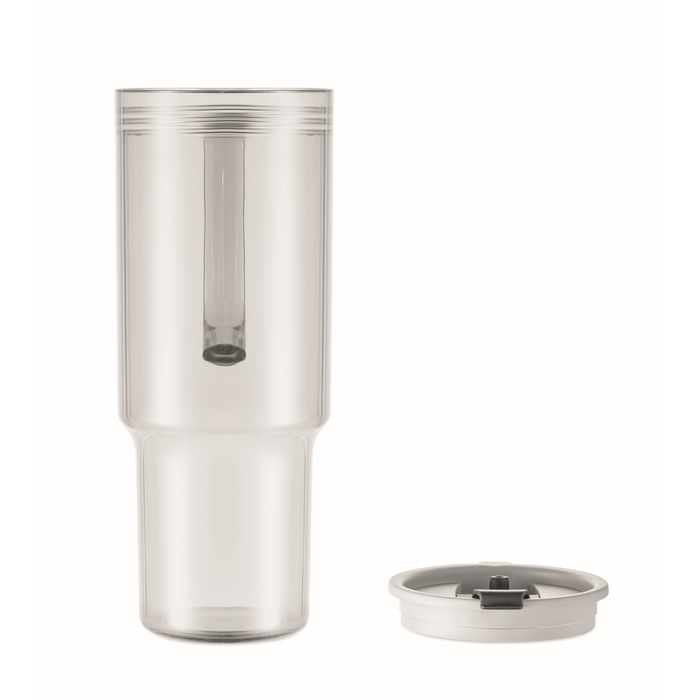 Průhledný hrnek z RPET s víčkem a PP brčkem. Objem: 1200 ml. Rozměry: 14,2 x 25,5 cm