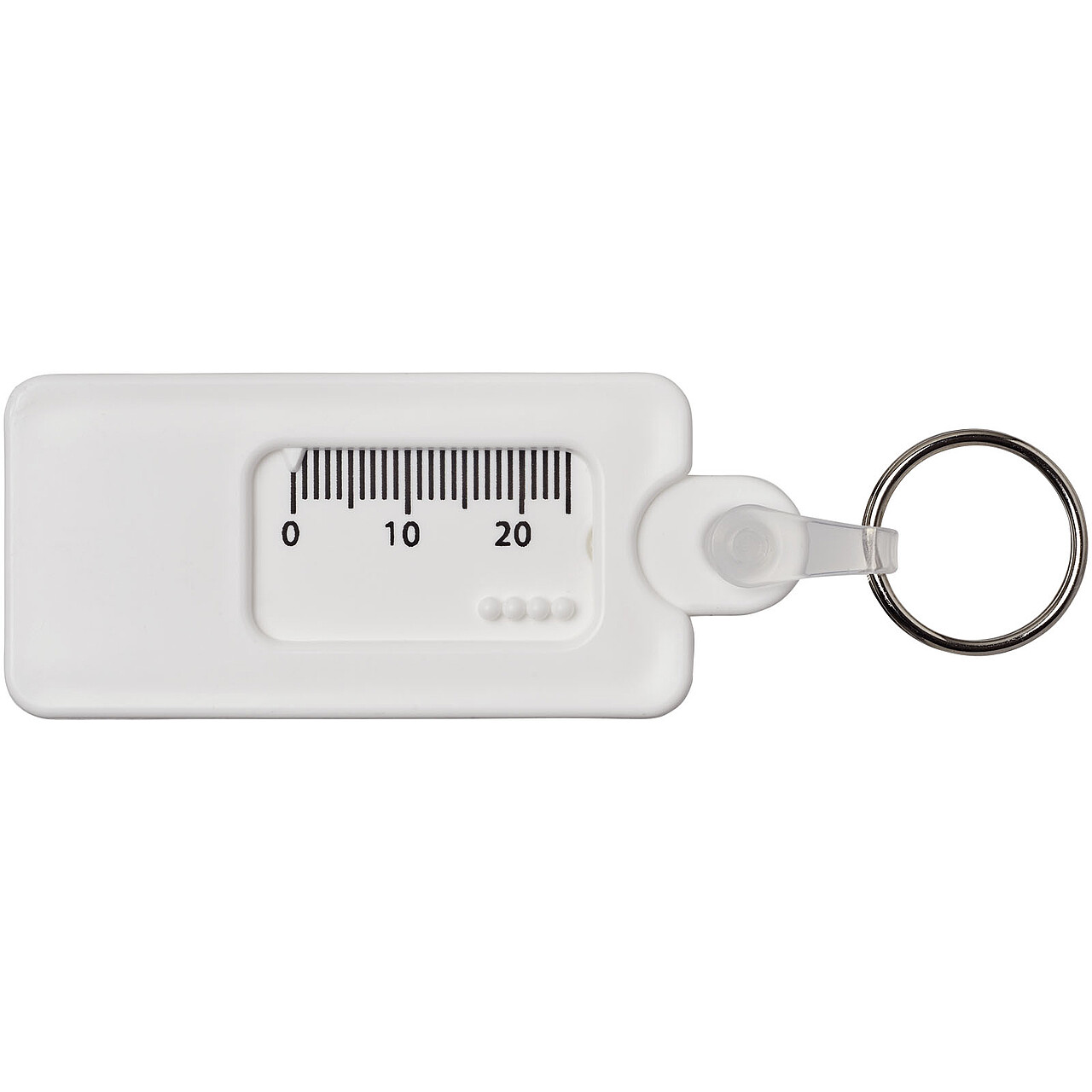 Recyklovaná klíčenka ve tvaru měřiče hloubky dezénu, bílá