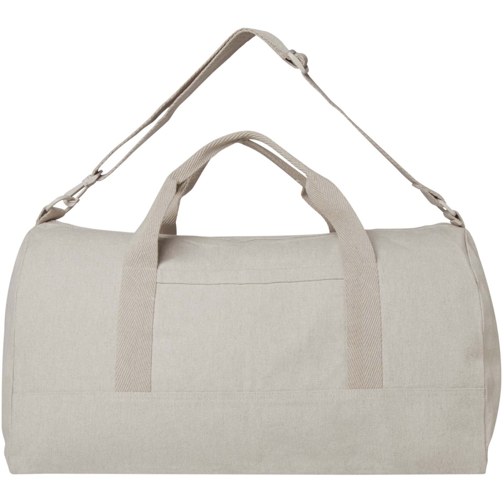 Taška vyrobená z recyklované bavlny s gramáží 500 g/m2 a recyklovaného polyesteru má prostornou hlavní přihrádku pro optimální uložení větších předmětů a malou přední kapsu na drobné předměty, jako je pas nebo telefon. Tašku lze nosit za 2 krátká ucha nebo za roztažitelný a odnímatelný ramenní popruh, který lze nastavit tak, aby byl maximálně pohodlný. Sportovní taška obsahuje recyklovaná vlákna, která používají předem vytříděný odpad, který určuje barvu příze. Rozměry: 55 x 30 x 30 cm