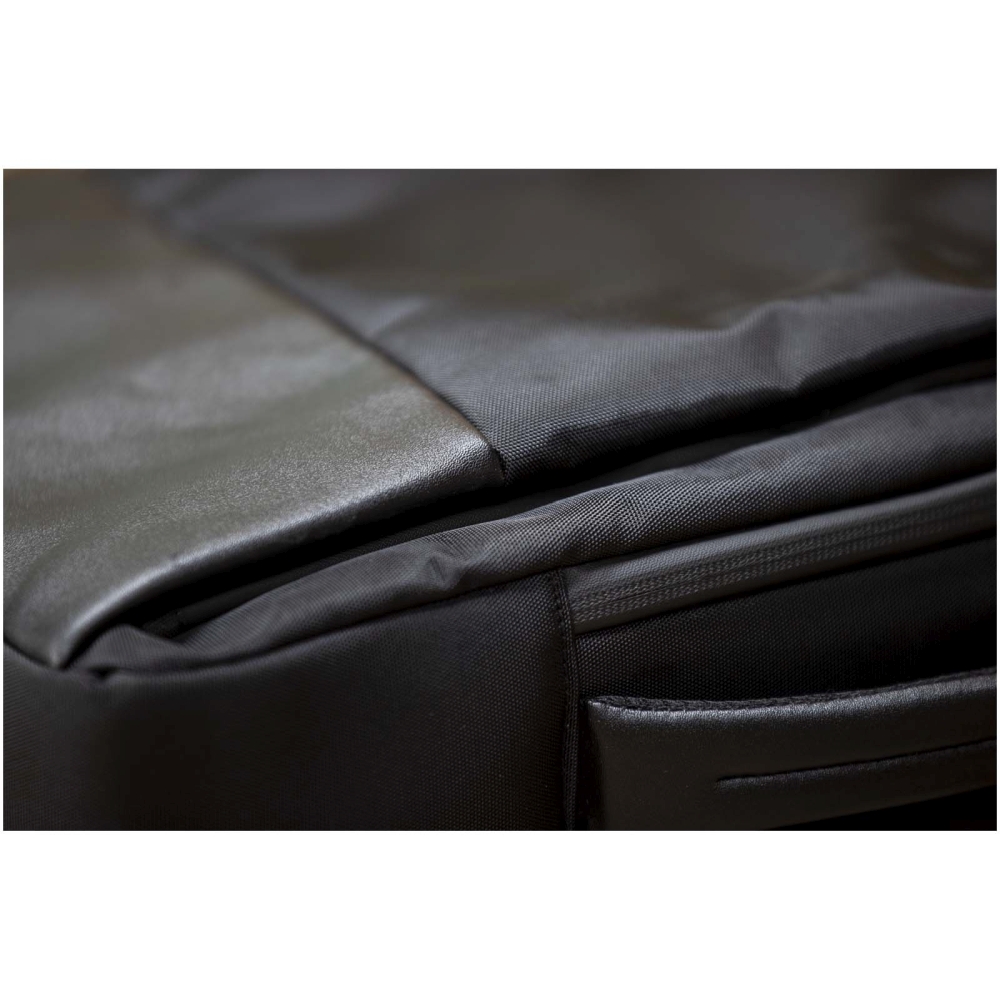 Rozkládací a odolný batoh na notebook je perfektní volbou pro profesionály, kteří potřebují při práci neustále cestovat. Batoh s rozšířenou kapacitou ekvivalentní příručnímu zavazadlu na kolečkách je vyroben z vodoodpudivého materiálu RPET s prémiovými PU prvky a RPET podšívkou. Obsahuje vyhrazenou přihrádku na 17" notebook, přihrádku na tablet, rozšiřitelný oddíl ve stylu zavazadla na kolečkách pro uložení oblečení, integrovanou nepropustnou velkou kapsu na toaletní potřeby a prostornou přední přihrádku s několika vnitřními i vnějšími kapsami pro uspořádání obsahu. Vyrobeno s polstrovanými a nastavitelnými ramenními popruhy, integrovanou kapsou na kartu, poutkem na sluneční brýle, tvarovanou vzduchovou síťovinou a polstrovanou rukojetí, které zajišťují maximální pohodlí a pohodlí při nošení. Objemová kapacita: 35 litrů. Neobsahuje PVC. Rozměry: 31 x 48 x 15 cm