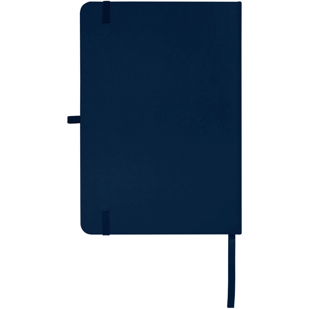 Zápisník A5 s pevnou obálkou z lepenky a zaoblenými rohy je nejen skvělým pomocníkem v kanceláři, ale také ideální příležitostí k propagaci vaší značky. Zápisník má 96 linkovaných listů papíru o gramáži 70 g/m2 a obálkou měkkou na dotek. Dodává se s poutkem na pero, elastickým uzávěrem a záložkou. Rozměry: 21,2 x 14,6 cm