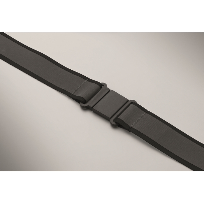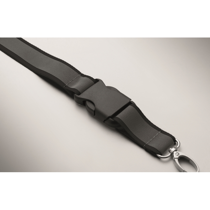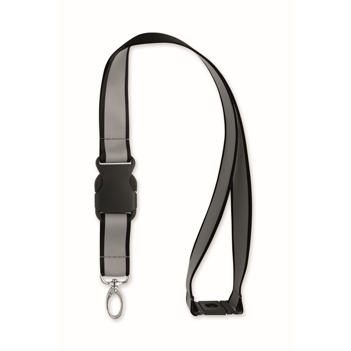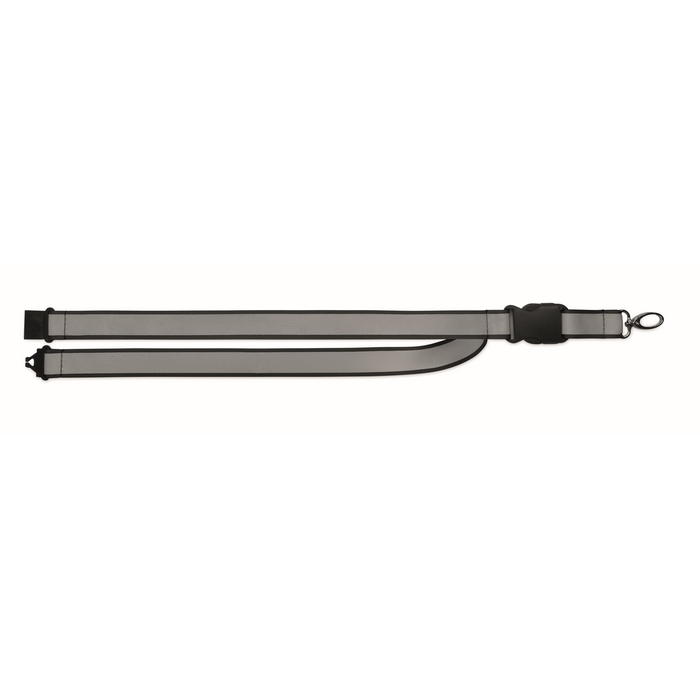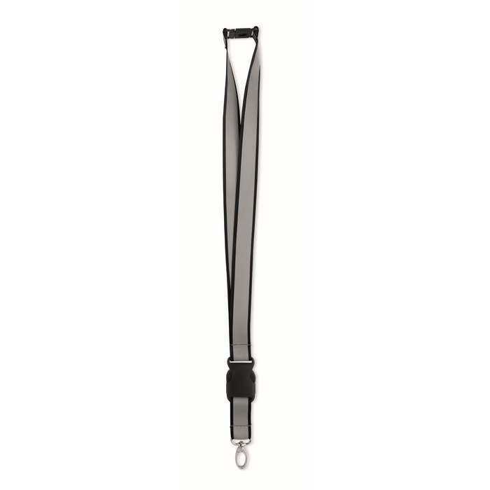 Reflexní 2,5 cm šňůrka na krk z RPET polyesteru. Kovová oválná karabinka, odnímatelná přezka a bezpečnostní PP spona. Pouze pro pro reklamní účely. Rozměry: 50 x 2.5 cm