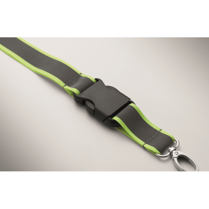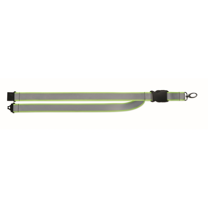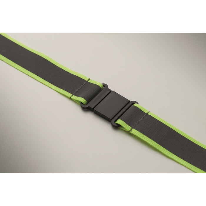 Reflexní 2,5 cm šňůrka na krk z RPET polyesteru. Kovová oválná karabinka, odnímatelná přezka a bezpečnostní PP spona. Pouze pro pro reklamní účely. Rozměry: 50 x 2.5 cm