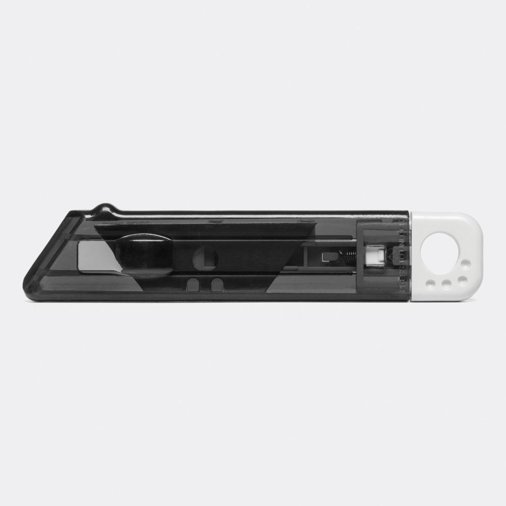 Odlamovací řezák s pružinovým mechanismem. Nůž má vyměnitelné břity a barevnou plastovou rukojeť. Rozměry: 12,5 x 2,5 x 1,3 cm