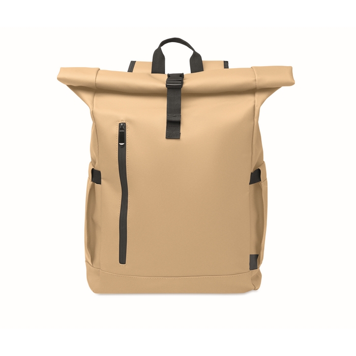 Rolovací batoh na 15palcový notebook z polyesteru RPET 600D potaženého PU s podšívkou z polyesteru RPET. Síťovaná polstrovaná záda s kapsou na zip a popruhem na kufr na kolečkách. Polstrovaný ramenní popruh se síťovanou vnitřní úpravou. Rozměry: 30 x 25 x 57 cm