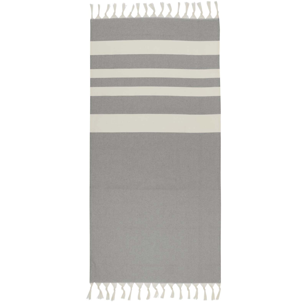 Ručník do orientálních lázní poskytuje luxus a pohodlí díky velkorysým rozměrům (147 × 75,5 cm), které zajišťují dostatečné pokrytí, ať už ležíte u bazénu nebo si užíváte den na pláži. Ručník s elegantními střapci na obou koncích je vyroben z 30 % bavlny, 35 % recyklované bavlny s certifikací GRS a 35 % recyklovaného polyesteru s certifikací GRS, 180 g/m2. Rozměry: 174 x 75,5 cm