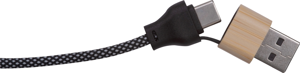 3 m rychlonabíjecí kabel (60W) s USB-C konektorem, připojitelným USB adaptérem a USB-C výstupem. Kabel s PET povrchem proti poškození. Rozměry: 305 x 2,8 x 1 cm