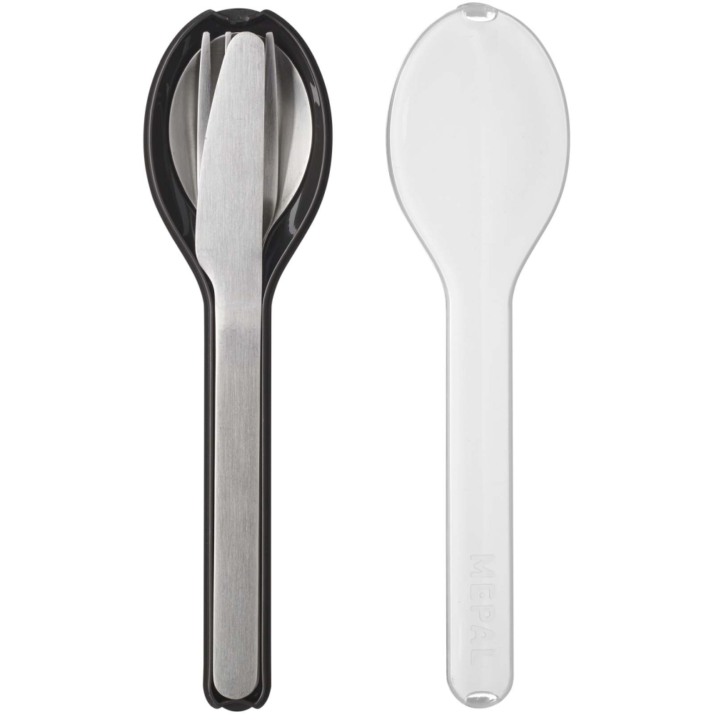 Tato stylová a praktická sada příborů Ellipse obsahuje nůž, vidličku a lžíci, vše vyrobené z nerezové oceli. Příbor je uložen v kompaktním plastovém držáku. Vhodné do myčky. Rozměry: 19,5 x 2,3 x 5,1 cm