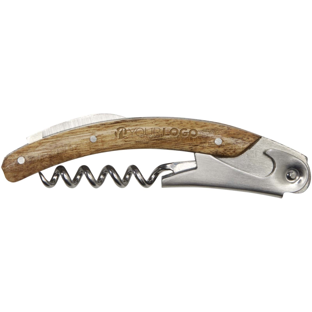 Sada držáků na víno z akátového dřeva. Sada obsahuje číšnický nůž s vývrtkou a zatažitelným ořezávačem fólie a funguje také jako držák na láhev s vínem. Ideální dárek pro milovníky vína. Rozměry: 27 x 2 x 6 cm