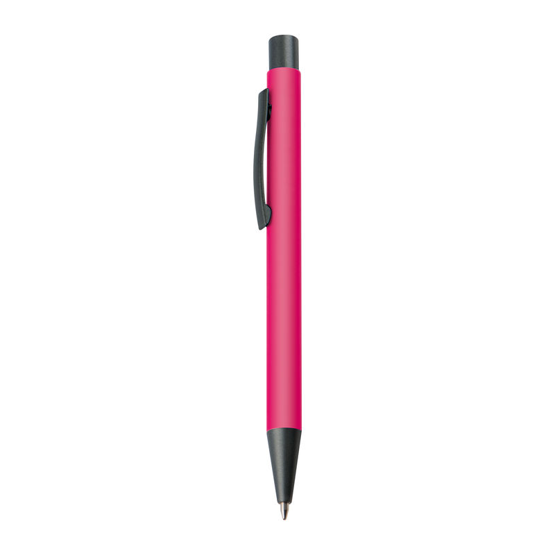 Plastové elegantní kuličkové pero s kovovým klipem. Tělo pera je v různých variantách příjemných živých barev. Pero má modrou náplň. Rozměry: O 1 × 14 cm.