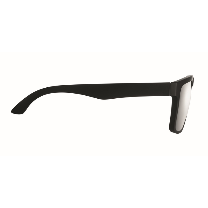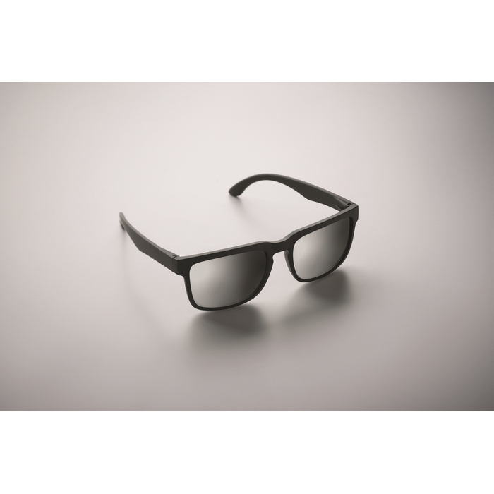 Festivalové sluneční brýle se zrcadlovými skly a matným pogumovaným rámečkem. Ochrana UV400. Rozměry: 14.1 x 4.7 x 14.8 cm