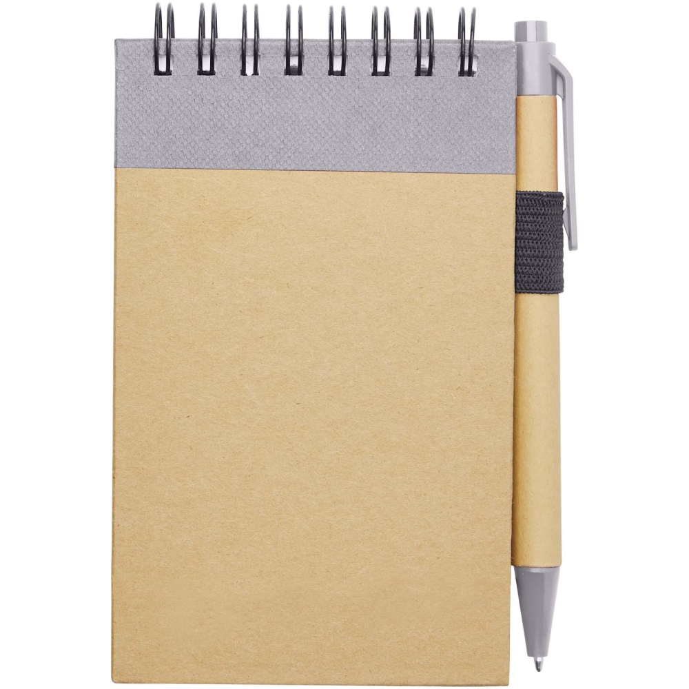 Zaznamenávání rychlých nápadů usnadňuje recyklovaný poznámkový blok s perem v odpovídající barvě. Malý poznámkový blok obsahuje 40 linkovaných listů referenčního recyklovaného papíru A7, takže se dobře vejde do každé malé i velké tašky, snadno se drží a kromě toho: je udržitelnou volbou. Na vnější straně tvrdých desek jsou k dispozici různé možnosti potisku pro zobrazení libovolného loga. Rozměry: 13,4 x 1,5 x 7,8 cm