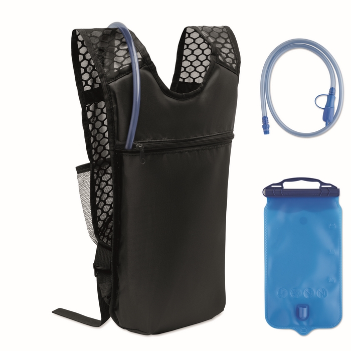Sportovní hydratačníbatoh z voděodolného materiálu 420D PU/nylon s detaily ze síťoviny. Součástí je 1500ml EVA nádoba na vodu s PVC trubičkou a zámkem. Lehký, odolný a ideální pro outdoorové aktivity. Rozměry: 20 x 6 x 39 cm
