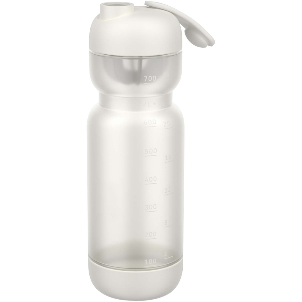 Sportovní lahev o objemu 800 ml vám pomůže snadno připravit koktejly bez hrudek. Součástí je integrovaný mixér, ukazatel objemu pro přesné dávkování a nepropustné víčko. Díky odnímatelné spodní části je čištění snadnější. Ideální na cesty nebo do posilovny. Rozměry: 24,4 x O 8 cm