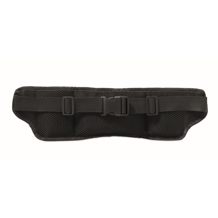 Sportovní ledvinka na běhání a turistiku vyrobená z polyesteru 420D RPET se síťovanými zády. Má dvě přihrádky na lahve, centrální kapsu na zip a nastavitelný popruh. Lehká a odolná. Rozměry: 47 x 13 cm
