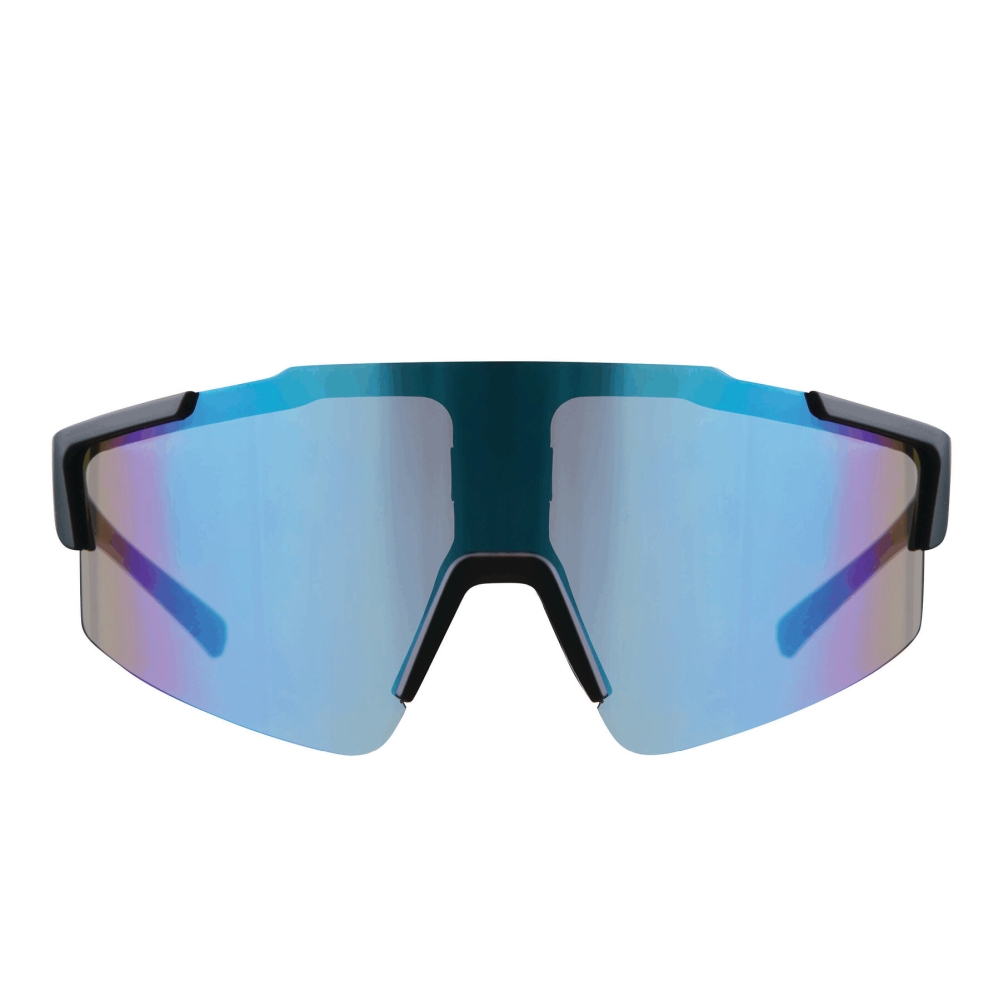 Sportovní sluneční brýle s modře tónovanými zrcadlovými skly, certifikace UV 400, rám z recyklovaného plastu.