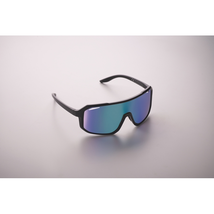 Sportovní sluneční brýle se zrcadlovými skly a barevným rámečkem. Ochrana UV400. Rozměry: 14.7 x 5.8 x 12.8 cm