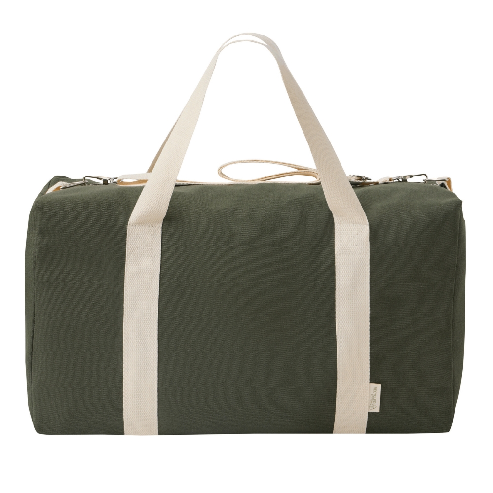 Sportovní taška z recyklované bavlny a polyesteru, prostorná hlavní přihrádka na zip, 2 rukojeti, nastavitelný a odnímatelný ramenní popruh. Rozměry: 48,5 x 27 x 21 cm