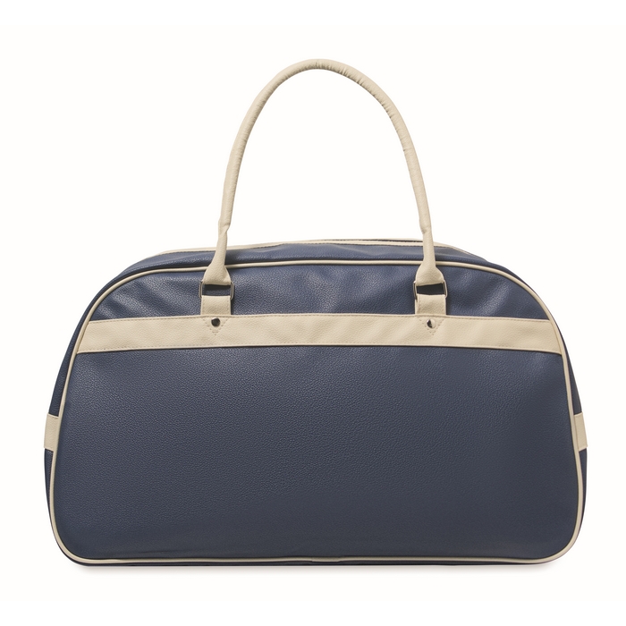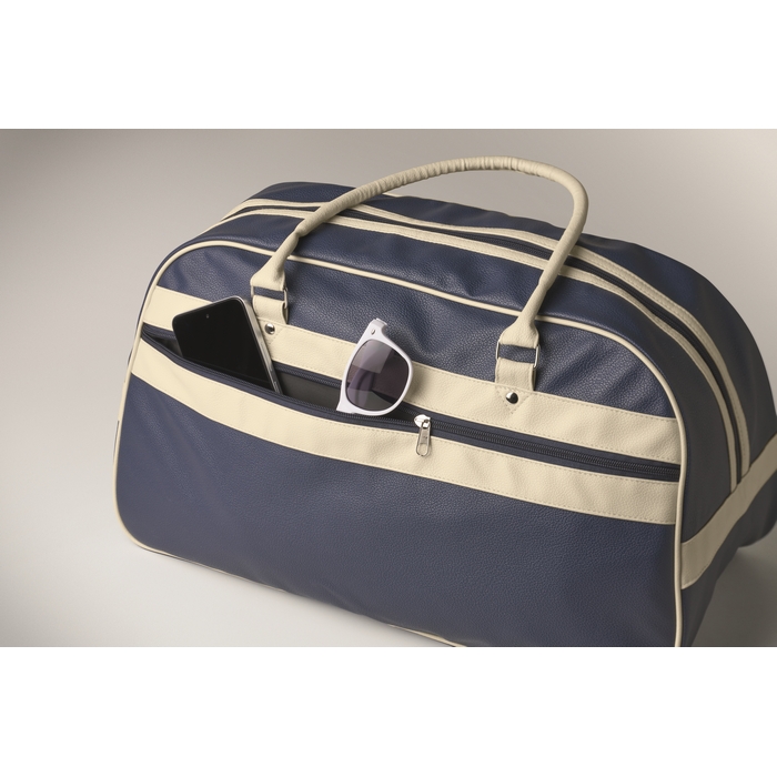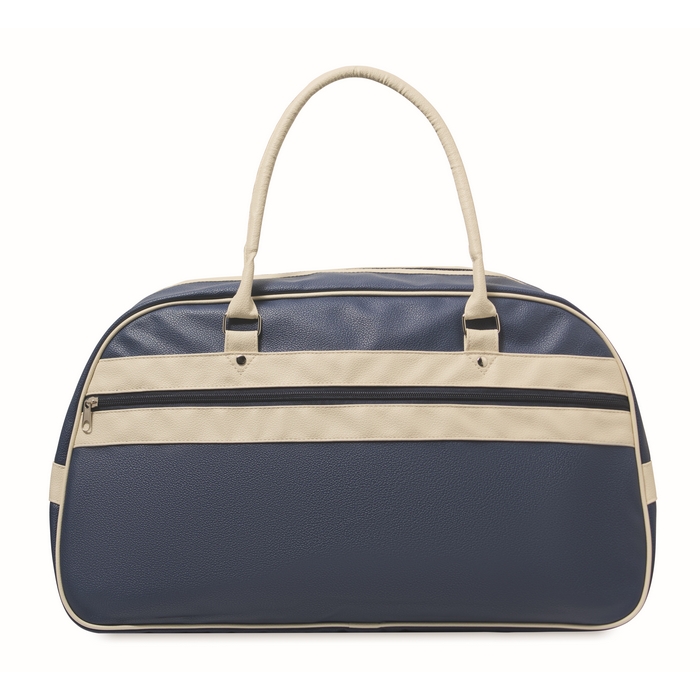 Sportovní taška z PU. Vnitřní podšívka, hlavní přihrádka a kapsa na zip, pevná ucha s cvočky a vsadka na dně. Objem cca 21,5 litru. Rozměry: 48 x 25 x 28 cm