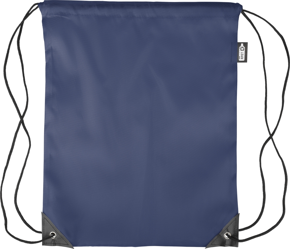 Stahovací batoh z polyesteru 210D se dvěma černými PU rohy na přední straně a vnitřním prošitím. Má černou nylonovou šňůrku na každé straně, zapínání na stahovací šňůrku a jednu vnitřní přihrádku. Objem: 5 l. Nosnost: 7 kg. Včetně štítku z rPET. Rozměry: 34 x 0,1 x 42 cm