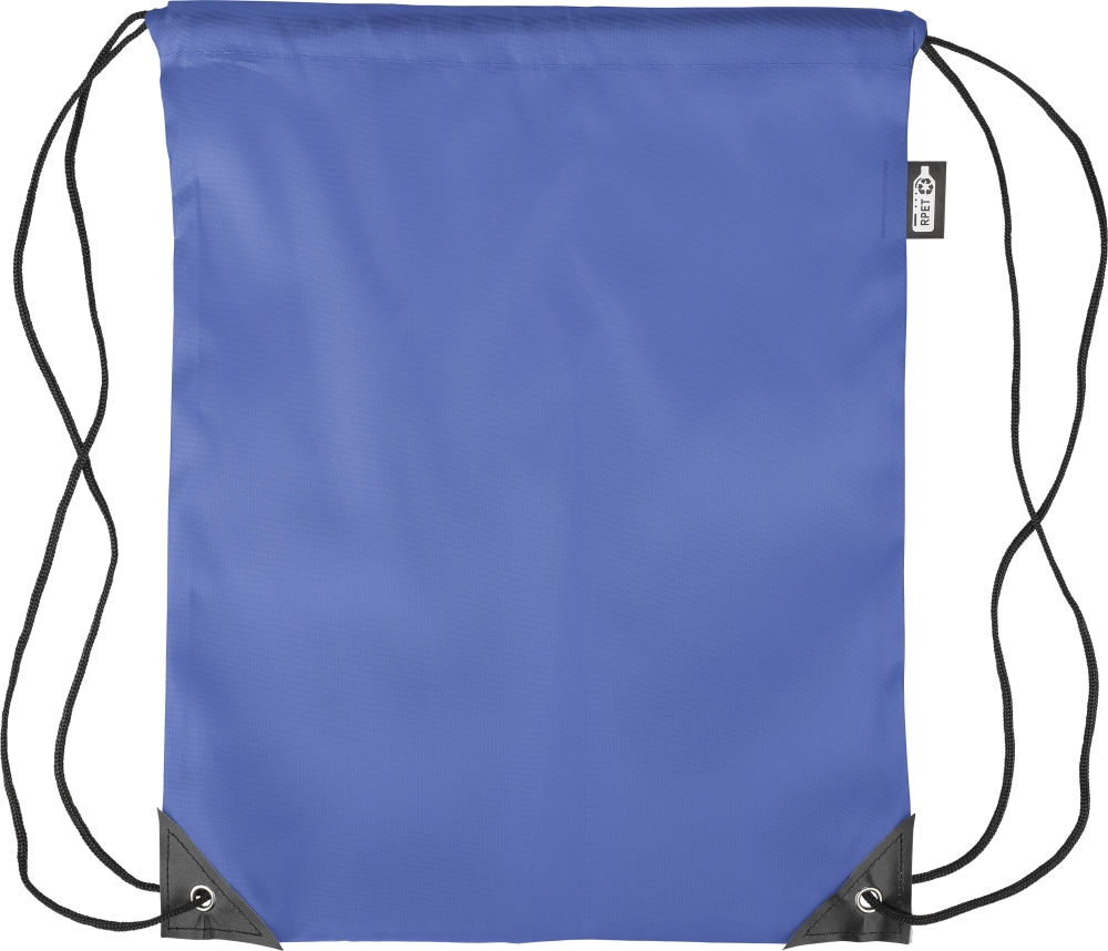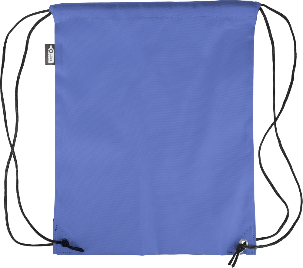 Stahovací batoh z polyesteru 210D se dvěma černými PU rohy na přední straně a vnitřním prošitím. Má černou nylonovou šňůrku na každé straně, zapínání na stahovací šňůrku a jednu vnitřní přihrádku. Objem: 5 l. Nosnost: 7 kg. Včetně štítku z rPET. Rozměry: 34 x 0,1 x 42 cm