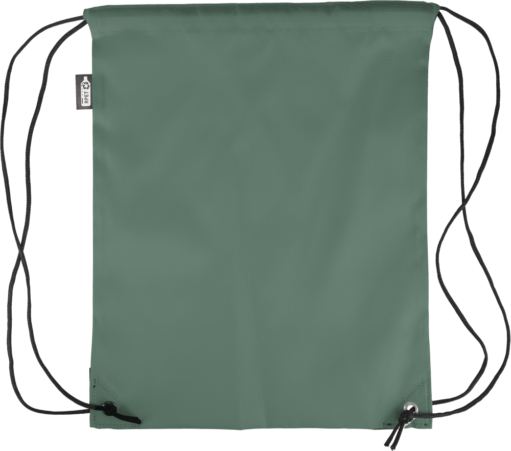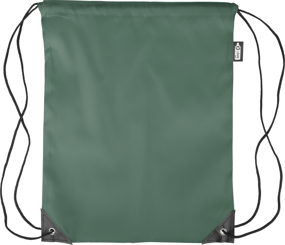 Stahovací batoh z polyesteru 210D se dvěma černými PU rohy na přední straně a vnitřním prošitím. Má černou nylonovou šňůrku na každé straně, zapínání na stahovací šňůrku a jednu vnitřní přihrádku. Objem: 5 l. Nosnost: 7 kg. Včetně štítku z rPET. Rozměry: 34 x 0,1 x 42 cm