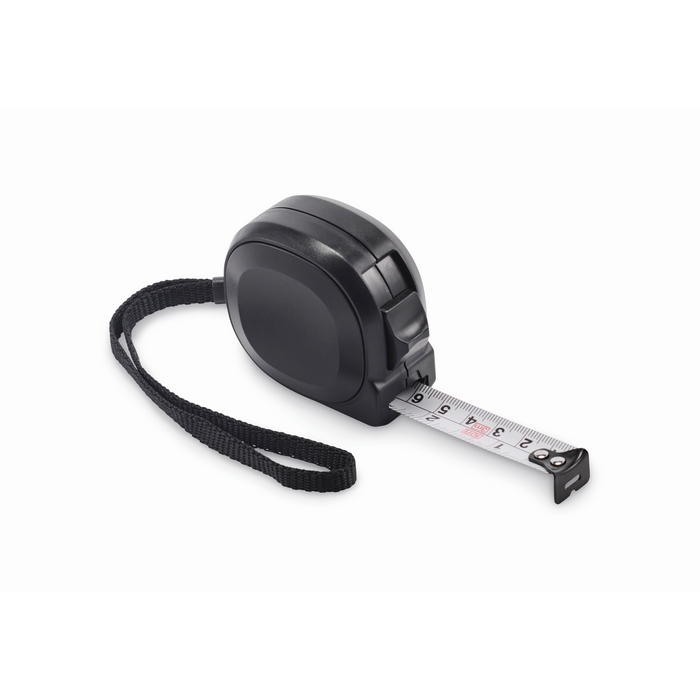 Svinovací metr z recyklovaného ABS. Ocelové měřicí pásmo. 3m. Rozměry: 6 x 6.5 x 3.3 cm