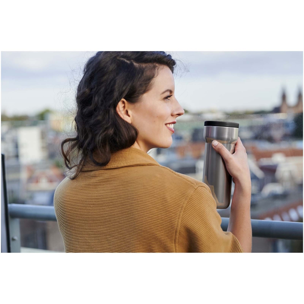 Termohrnek o objemu 375 ml je vyrobený z odolné nerezové oceli a je ideální pro život na cestách. Udrží nápoje horké až 4 hodiny nebo studené až 8 hodin, takže se ideálně hodí na ranní kávu i na osvěžující studené nápoje. Hrnek je 100% nepropustný, vejde se téměř do všech držáků na nápoje a neobsahuje BPA, takže ho můžete bezpečně používat každý den. Pro zachování povrchové úpravy doporučujeme mýt v ruce. Rozměry: 17,8 x O 8,4 cm