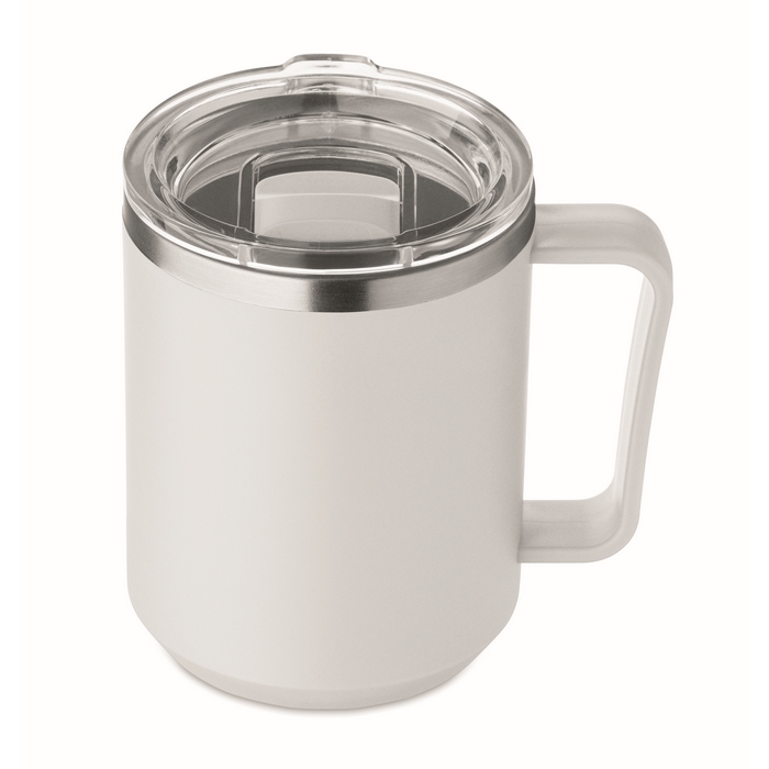 Termohrnek s vnitřkem z 90 % recyklované nerezové oceli a 10 % nerezové oceli a vnějškem z recyklovaného PP. Průhledné posuvné víčko z AS. Objem 400 ml. Rozměry: 11.6 x 11.5 cm