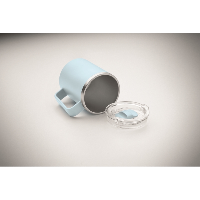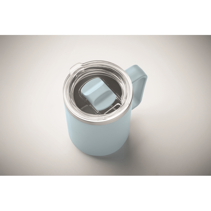 Termohrnek s vnitřkem z 90 % recyklované nerezové oceli a 10 % nerezové oceli a vnějškem z recyklovaného PP. Průhledné posuvné víčko z AS. Objem 400 ml. Rozměry: 11.6 x 11.5 cm