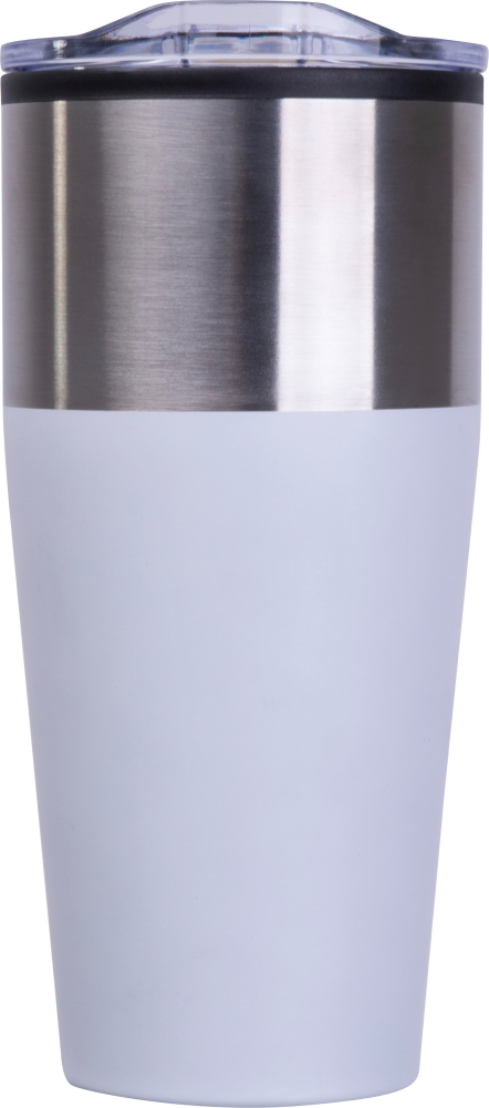 Dvoustěnný cestovní hrnek s objemem 600 ml, plastovým vnitřkem a nerezovým vnějším povrchem. Udrží nápoje déle teplé nebo studené, vhodný aj na sýycené nápoje. Rozměry: o 8,8 x 19,3 cm