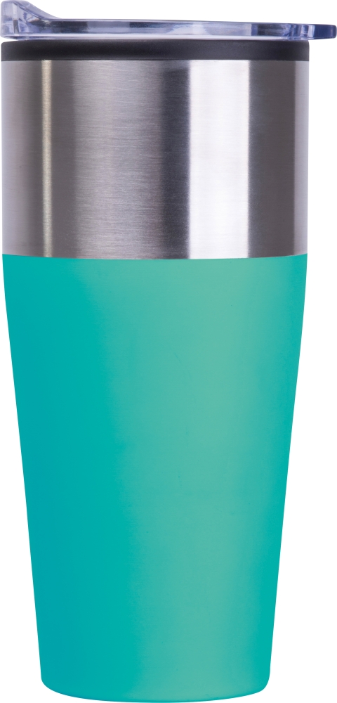 Dvoustěnný cestovní hrnek s objemem 600 ml, plastovým vnitřkem a nerezovým vnějším povrchem. Udrží nápoje déle teplé nebo studené, vhodný aj na sýycené nápoje. Rozměry: o 8,8 x 19,3 cm