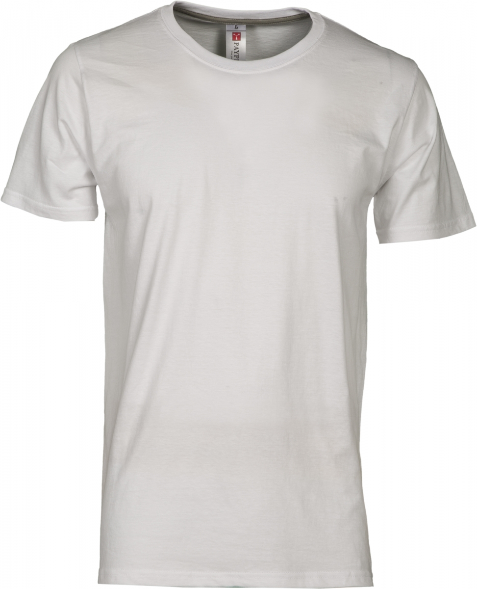 Pánské tričko s krátkým rukávem a kulatým výstřihem, 1,5 cm pružný žebrovaný lem u krku s vrchním prošíváním na přední straně, kontrastní výztuž od ramena k rameni viditelná na vnitřní straně průkrčníku, pružné švy, postranní švy, 100% bavlna.