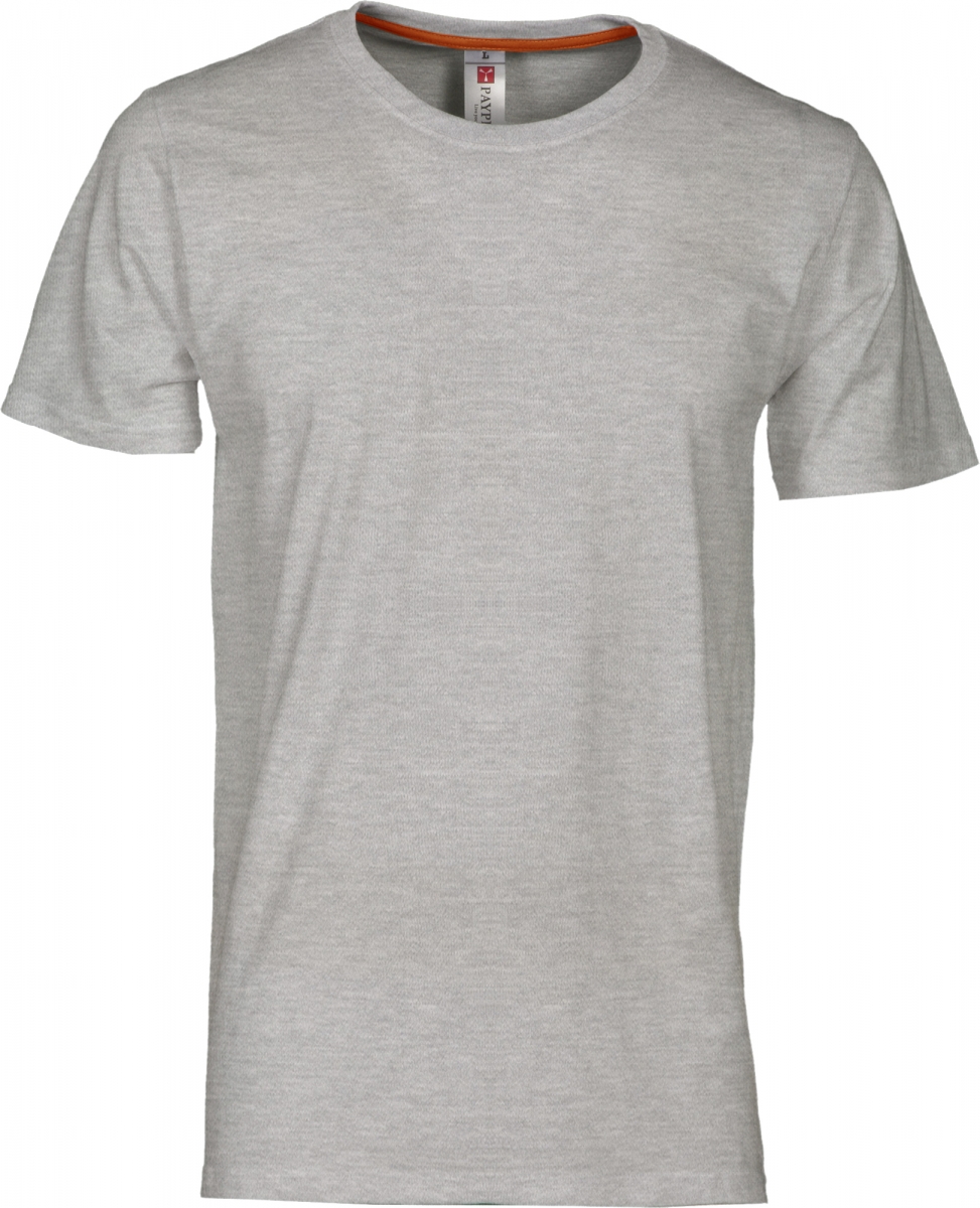 Pánské tričko s krátkým rukávem a kulatým výstřihem, 1,5 cm pružný žebrovaný lem u krku s vrchním prošíváním na přední straně, kontrastní výztuž od ramena k rameni viditelná na vnitřní straně průkrčníku, pružné švy, postranní švy, 93% bavlna + 7% viskóza.