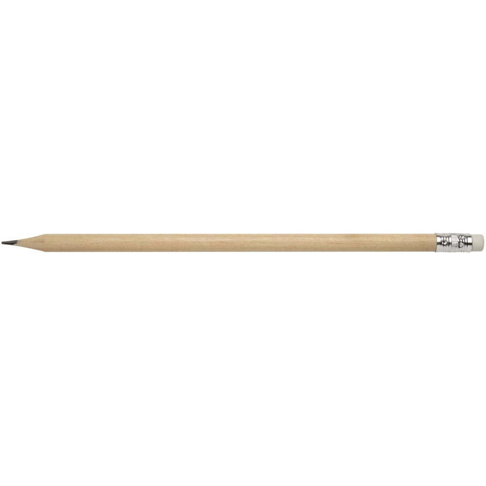 Tužka s gumou. Tužka je vyrobena z topolového dřeva, guma je vyrobena z grafitu a objímka je vyrobena z hliníku. Rozměry: 19 x O 7 cm
