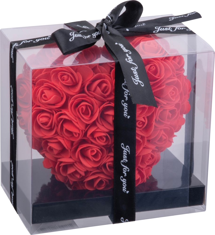 Srdce vyrobené z precizně vyrobených umělých hlav růží. Dodávané v průhledné, kvalitní dárkové krabičce s elegantní stuhou – ideálně jako dekorativní dárek nebo milé gesto. Rozměry: 16,1 x 10 x 15,1 cm