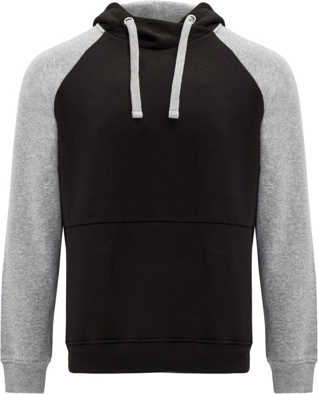 Dvoubarevná unisex mikina s kapucí. Kapuce se zkříženým límcem a kovovými očky. Kontrastní vnitřní kapuce, stahovací šňůrka a raglánové rukávy. Klokaní kapsa. Manžety a lem z elastanového žebrového úpletu 1 × 1. Odnímatelný štítek. Úplet počesaný na rubu50% Bavlna, 50% Polyester, 280 g/m2.