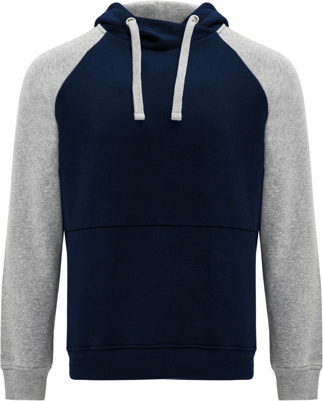 Dvoubarevná unisex mikina s kapucí. Kapuce se zkříženým límcem a kovovými očky. Kontrastní vnitřní kapuce, stahovací šňůrka a raglánové rukávy. Klokaní kapsa. Manžety a lem z elastanového žebrového úpletu 1 × 1. Odnímatelný štítek. Úplet počesaný na rubu50% Bavlna, 50% Polyester, 280 g/m2.