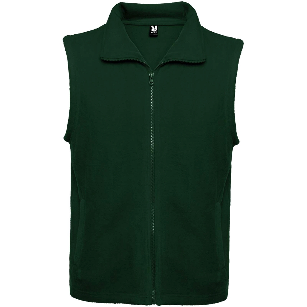 Fleecová vesta s polo výstřihem a odpovídajícím zipem. Boční kapsy se shodným zipem. Odnímatelný štítek.