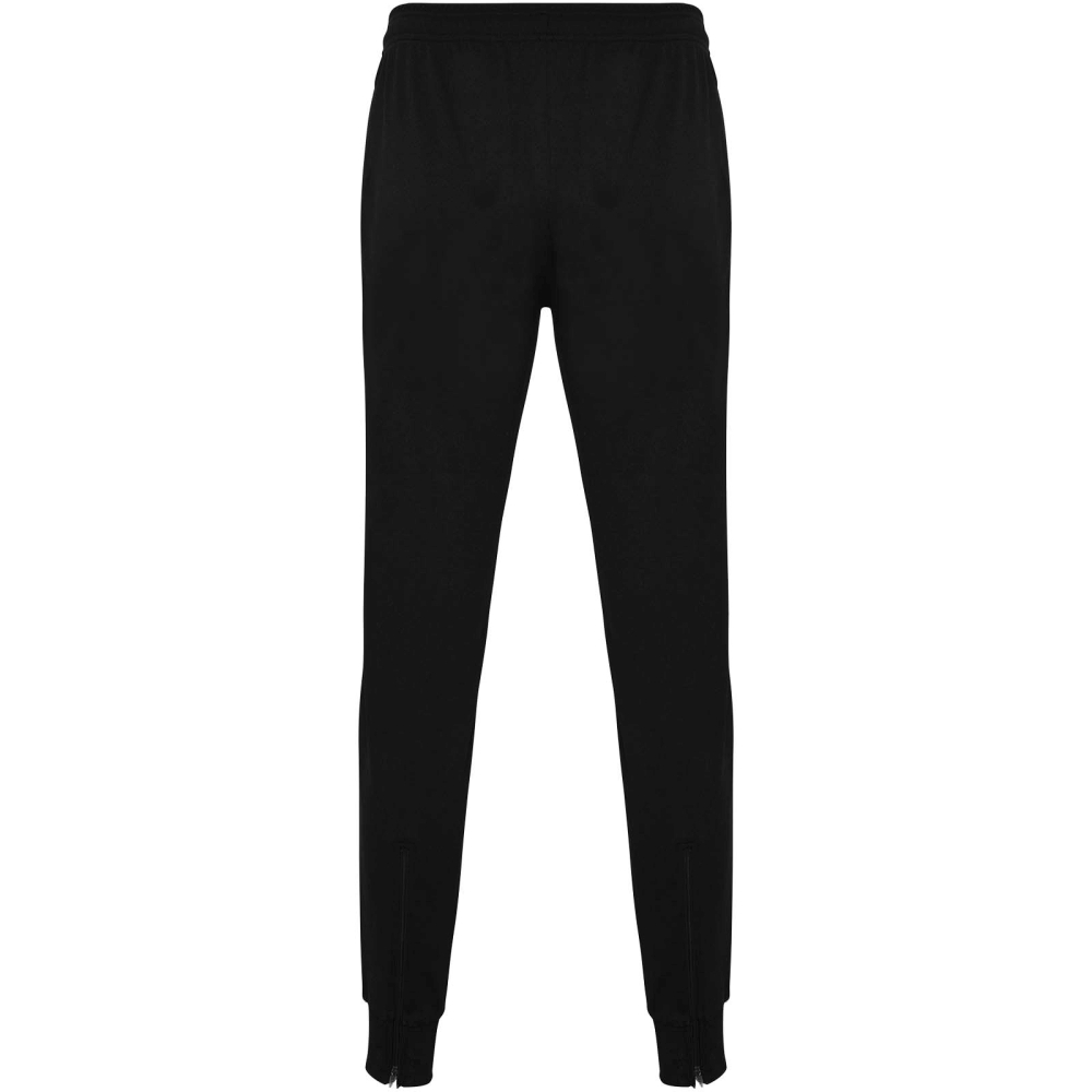 Kalhoty s nastavitelným elastickým pasem s vnitřní stahovací šňůrkou. Boční kapsy. Manžety a zip na spodní části nohavic. Odnímatelný štítek.